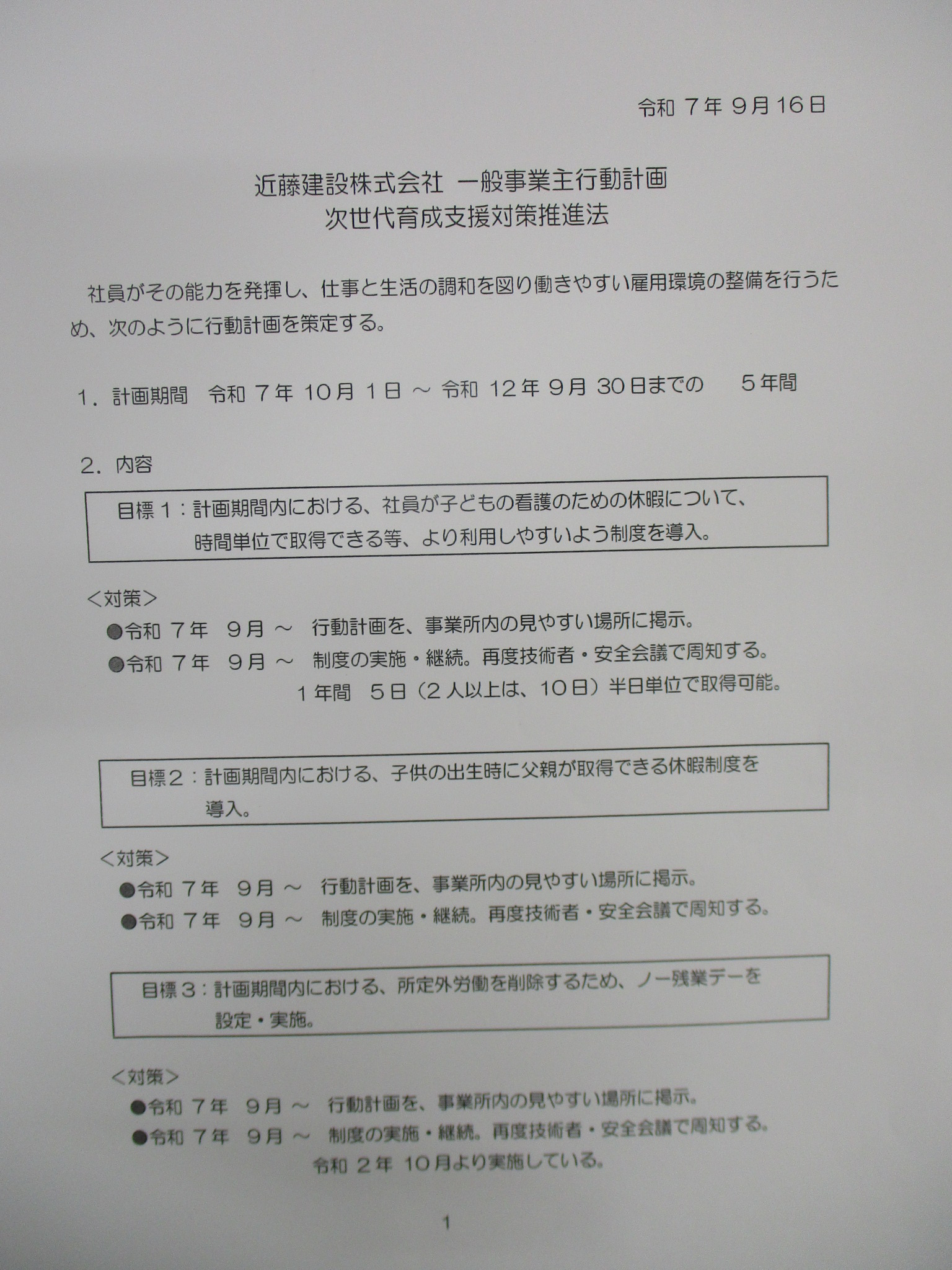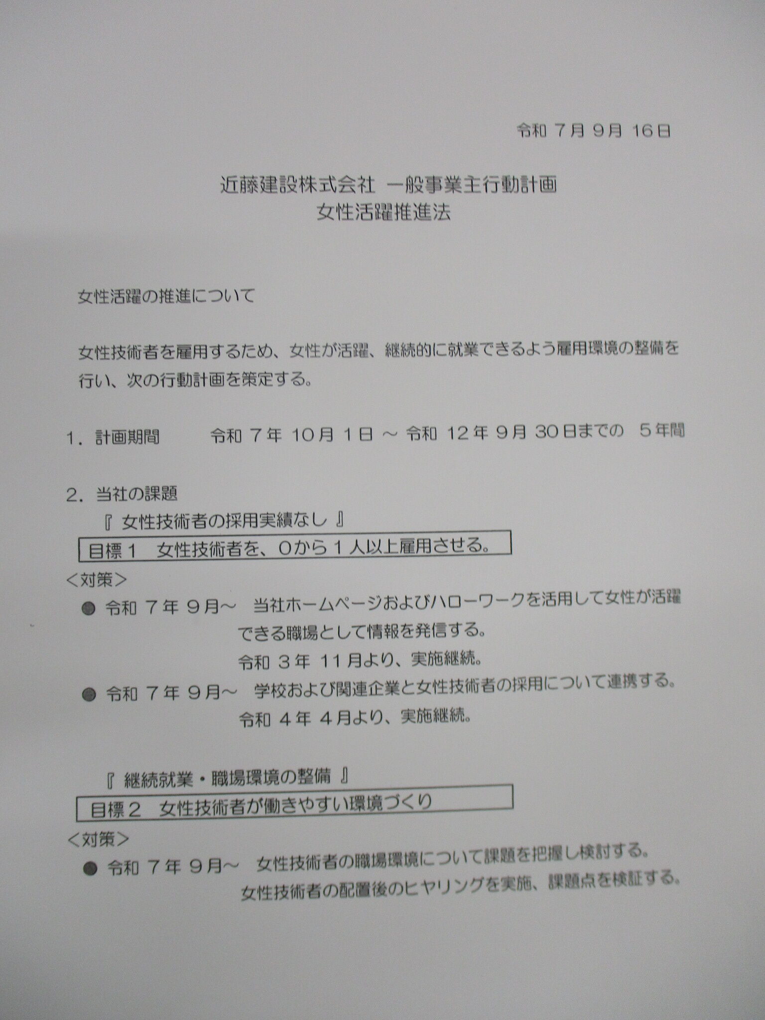 一般事業主行動計画